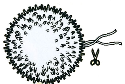 2. Виступаючі частини ниток акуратно подрежьте ножицями, залишивши необрізаними нитки, якими пов'язували помпон.