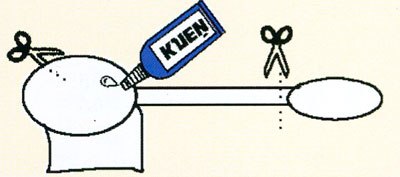 б) Щоб вийшла форма рукавиці, злегка змочіть вату водою, віджати зайву воду великим і вказівним пальцями. Потім зробіть надріз ножицями в області великого пальця. Для кращого скріплення використовувати клей ПВА.