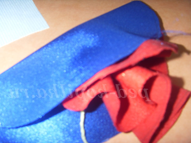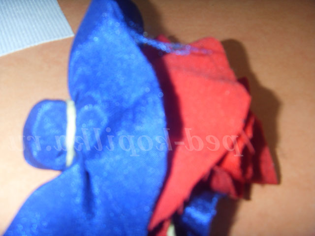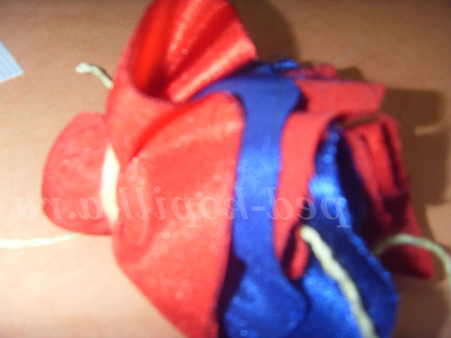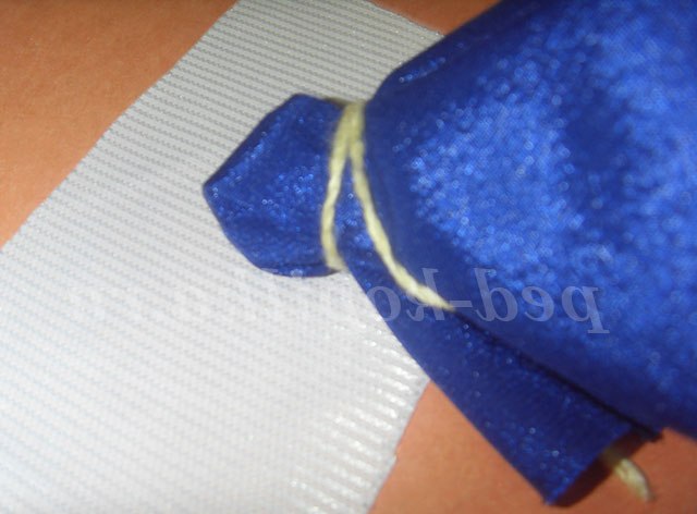 Кінці білої тканини зав'язуємо нитками і прив'язуємо косичку з ниток.