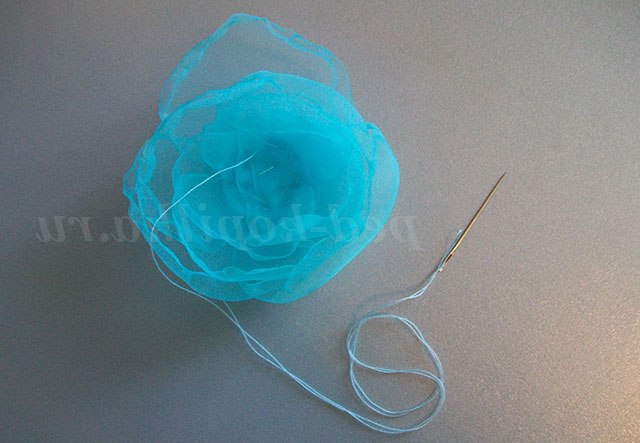 Вирізаємо невеликі гуртки з щільної тканини, вони потрібні для того, щоб зібрати пелюстки квітки разом.