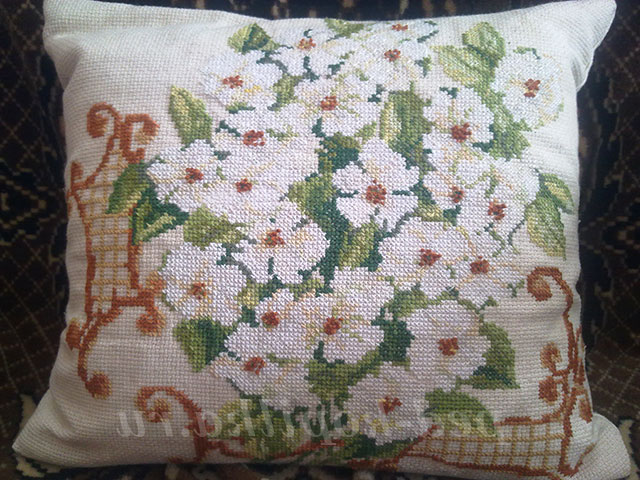 У Західній Європі рахункова вишивка стала особливо популярна в ХVI столітті. У той час вона складалася в основному з біблійних сюжетів і текстів, що поєднують різні техніки виконання. До кінця ХVIII століття на зразках вишивки виразно став переважати класичний хрестик. А за тематикою вишивки стали більш різноманітними. На Сході вишивками традиційно прикрашали домашню начиння - килими, накидки, в'ючні мішки. Прикраса вишитими картинами стін своїх будинків і донині актуально в будь-якій країні. Ви можете знайти величезну кількість схем для вишивання і підібрати саме те, що відповідає вашим вимогам і смакам. Я пропоную варіант квіткової вишивки, яка в підсумку була використана як наволочка на подушку, стала креативним диванним прикрасою.
