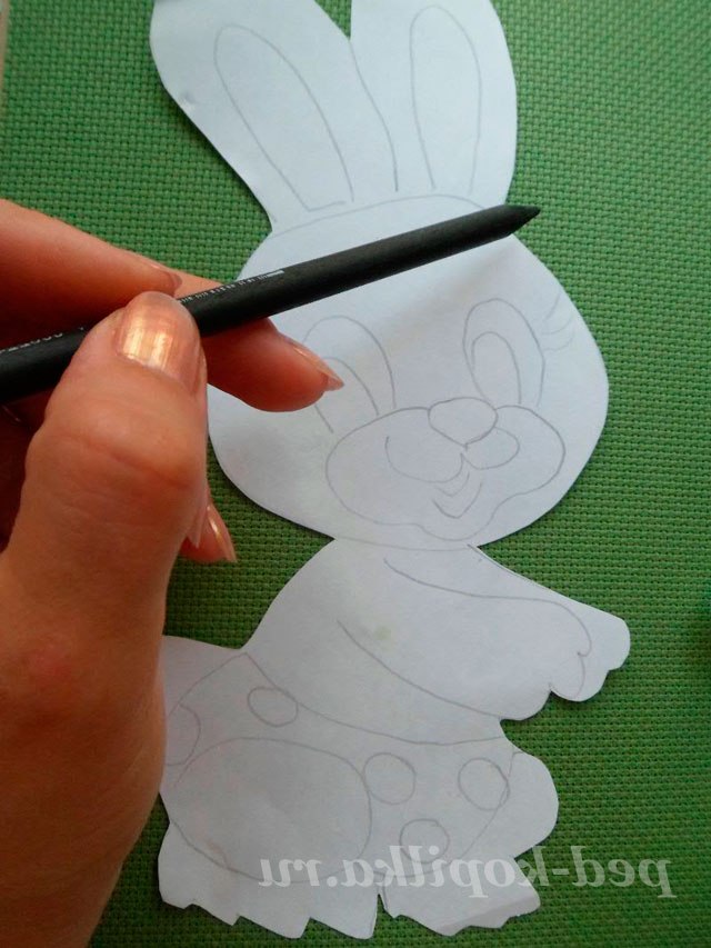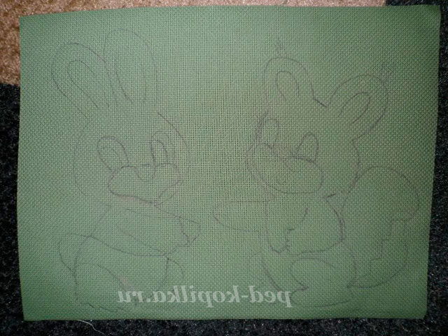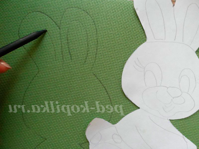 На канві за шаблоном обводимо зайчика і білочку.