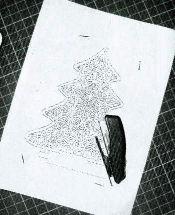 1. Перевести малюнок шаблону ялинки на папір і скріпити два аркуші степлером.