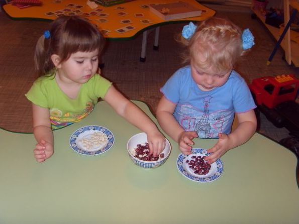 Ще можна: сортувати, вгадувати з закритими очима, катати між великим і вказівним пальцями, придавлювати по черзі всіма пальцями обох рук до столу, намагаючись при цьому робити обертальні рухи. Все це надає прекрасний тонізуючий і оздоровлюючу дію і головне: розвиває дрібну моторику. А розвиток пальців тісно пов'язане з розвитком мови дитини.