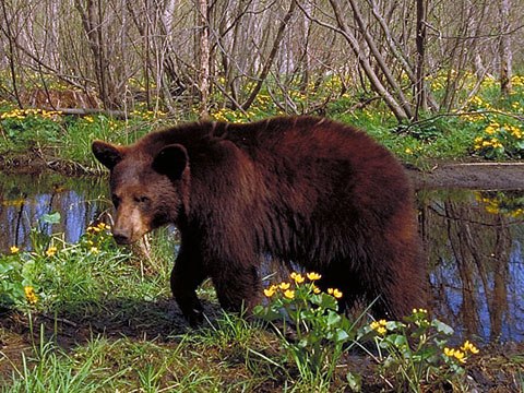 Взимку у ведмедиці народжуються ведмежата. А навесні вона виводить своїх дитинчат з барлогу. Вона вчить ведмежат знаходити собі корм.