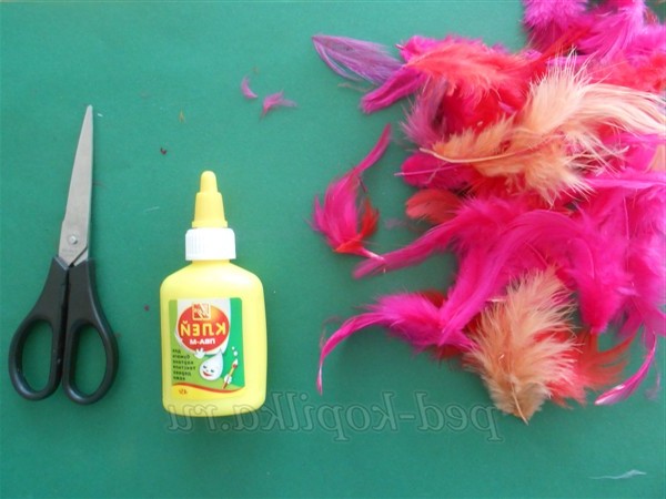 Для роботи знадобляться пташине пір'я, клей, ножиці.