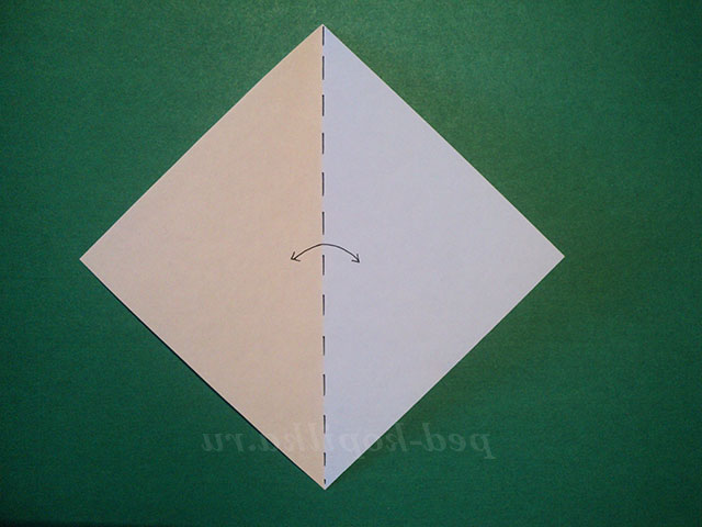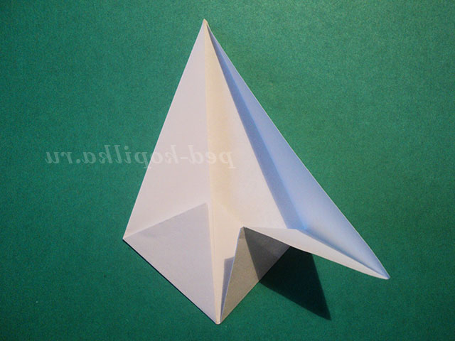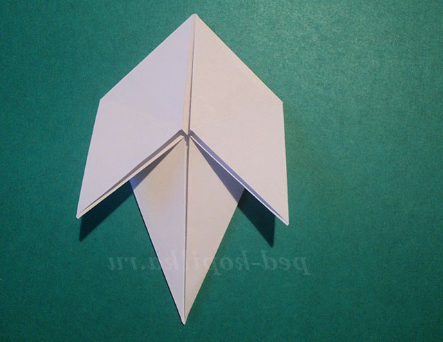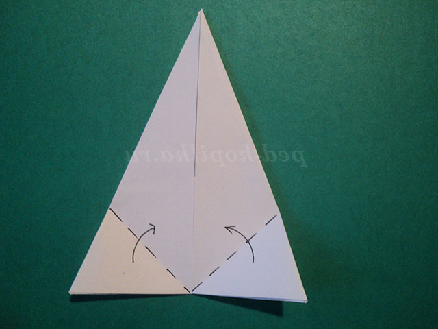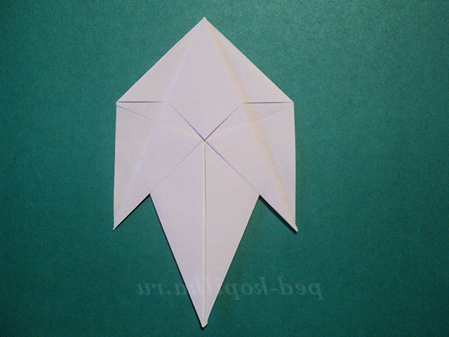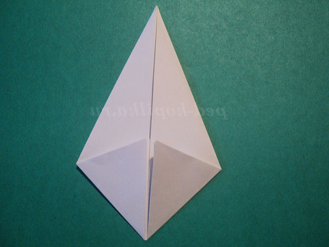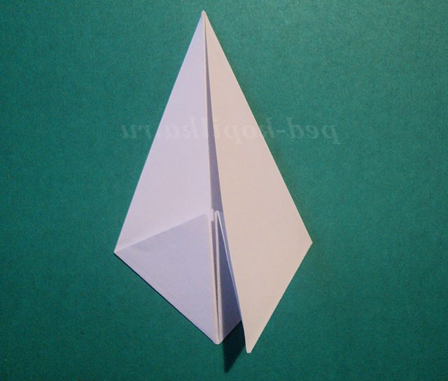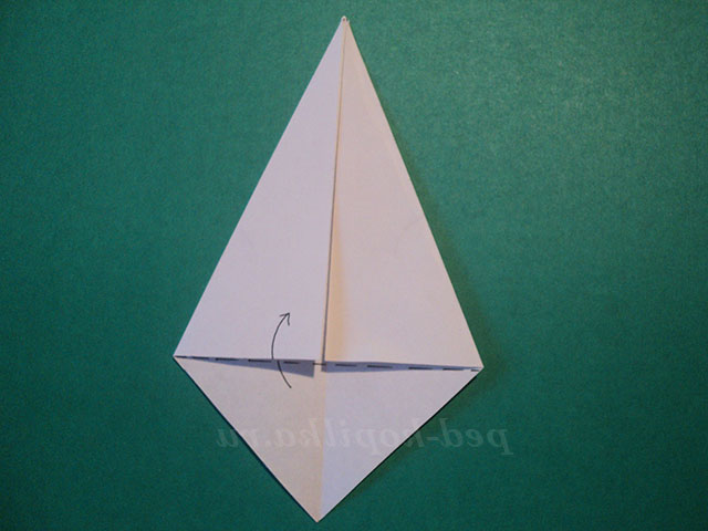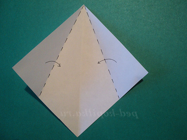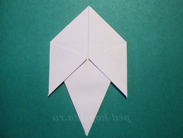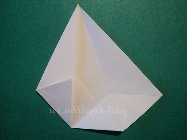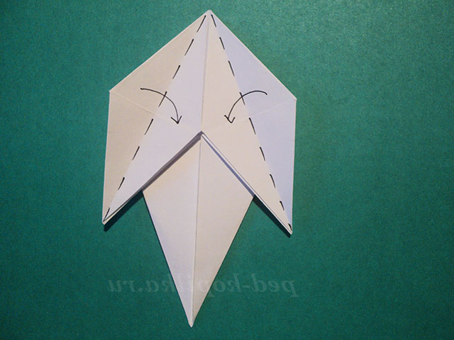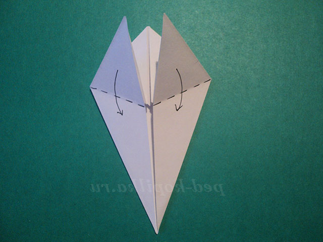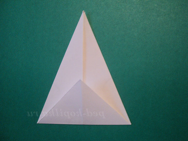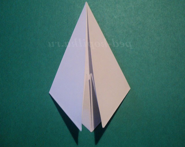 10. Складай до середини. При цьому задній шар паперу (маленькі пелюстки) виходить нагору.