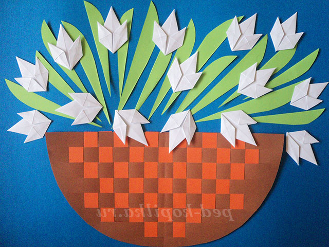 Ви праві, це підсніжник, а виготовляти ми його будемо з допомогою техніки Орігамі» і зберемо повну корзину пролісків.