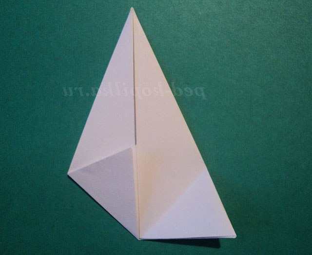 - Давайте уважно розглянемо квітка підсніжника, виконаного в техніці «Орігамі». Це один з модулів в техніці «Орігамі» - «Трилисник».