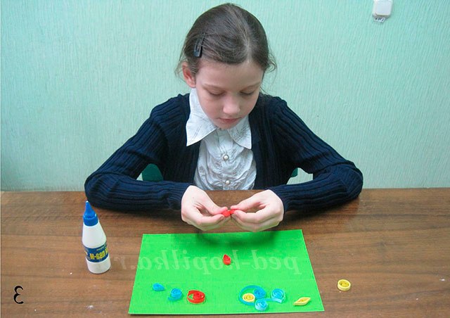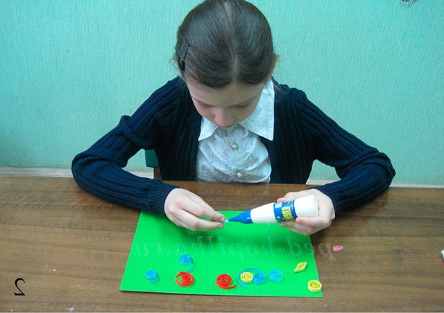 1. Для основи роботи взято аркуш гофрованого картону. Для виготовлення квітів підібрана кольорова папір. Попередньо нарізані смужки-4 мм, в цьому мені допомагав керівник. Роли для квітів виготовлялися шляхом намотування смужки паперу на спицю.