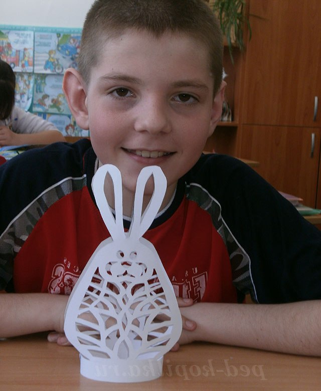 Наближається свято Світлої Пасхи. У цей день ми вітаємо рідних і друзів і даруємо Великодні подарунки, прикраси для Великоднього столу. Я приготував подарунок для друга в техніці витинанки Великодній Зайчик. Мій подарунок може прикрасити великодній стіл і використовуватися як підставка для великодніх яєць.