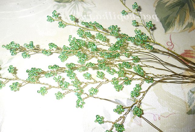 Тепер весь час чергуємо кінці дроту, щоб вони залишалися однакової довжини і чергуємо петельку з бісеру з прокручуванням обох дротів - Чередующееся плетіння.