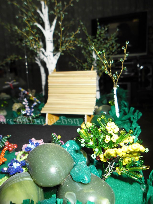 Інші етапи роботи (виготовлення лавки, плетіння і складання квіточок, плетіння листочків, виготовлення підставки) були докладно висвітлені в моєму попередньому майстер-класі