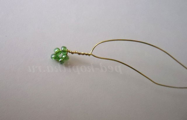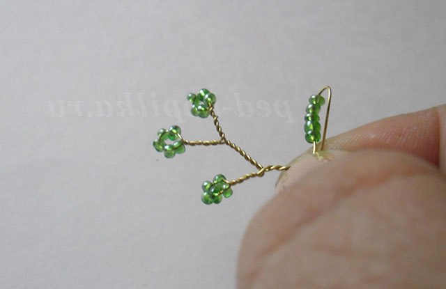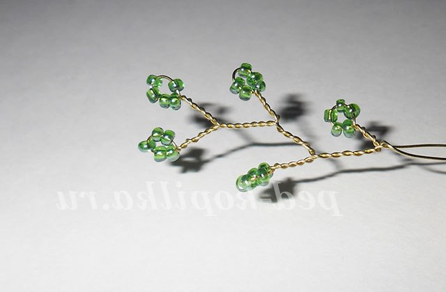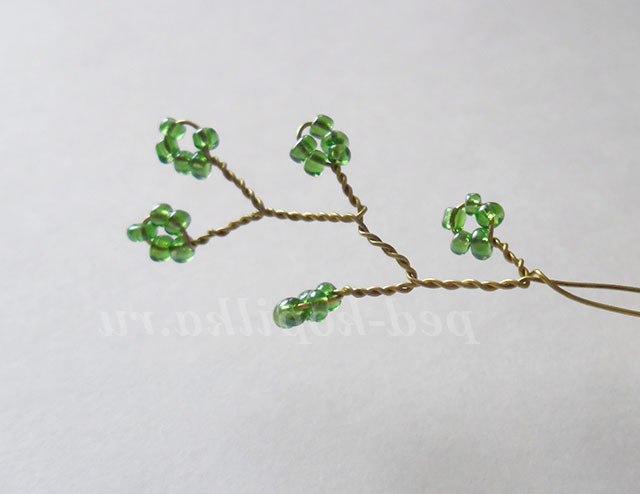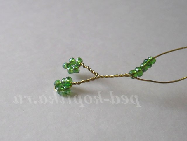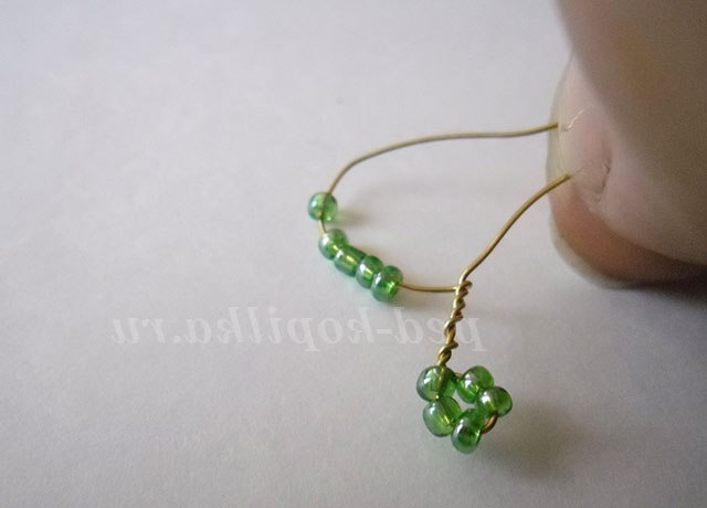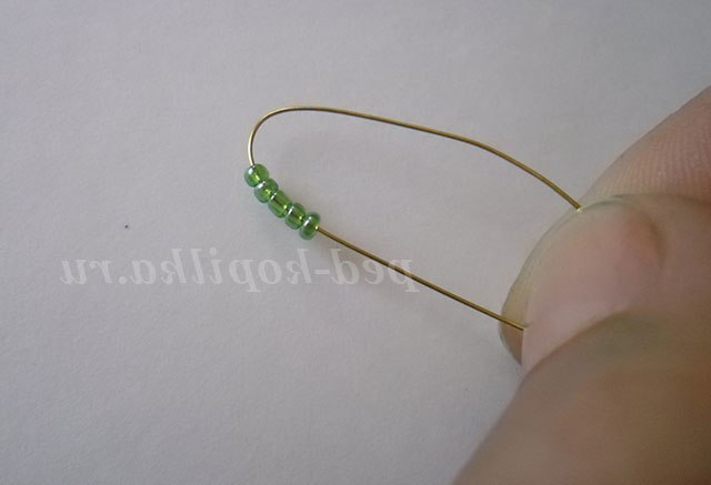 4. Тепер потрібно прокрутити обидві дроту разом і знову набрати п'ять бісеринок.