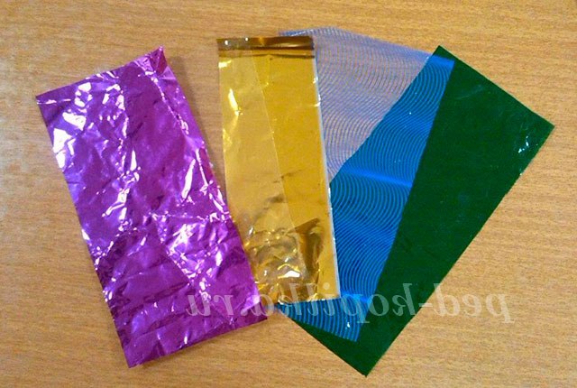 Береться декілька видів паперу: фіолетова, золота, зелена, прозора, а так само все обладнання до роботи.