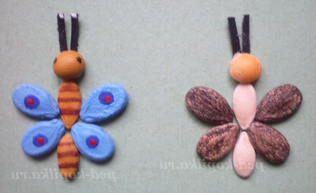 з кавунових насіння скласти крила і приклеїти до тулуба.