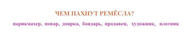 А тепер ви самі пофантазируете і скажете, чим пахнуть ремесла, назви яких побачите на слайдах.