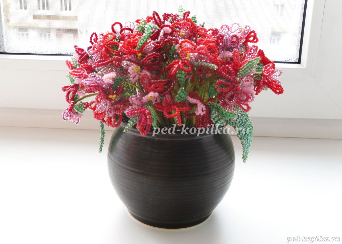 Квіткова композиція в горщику з бісеру