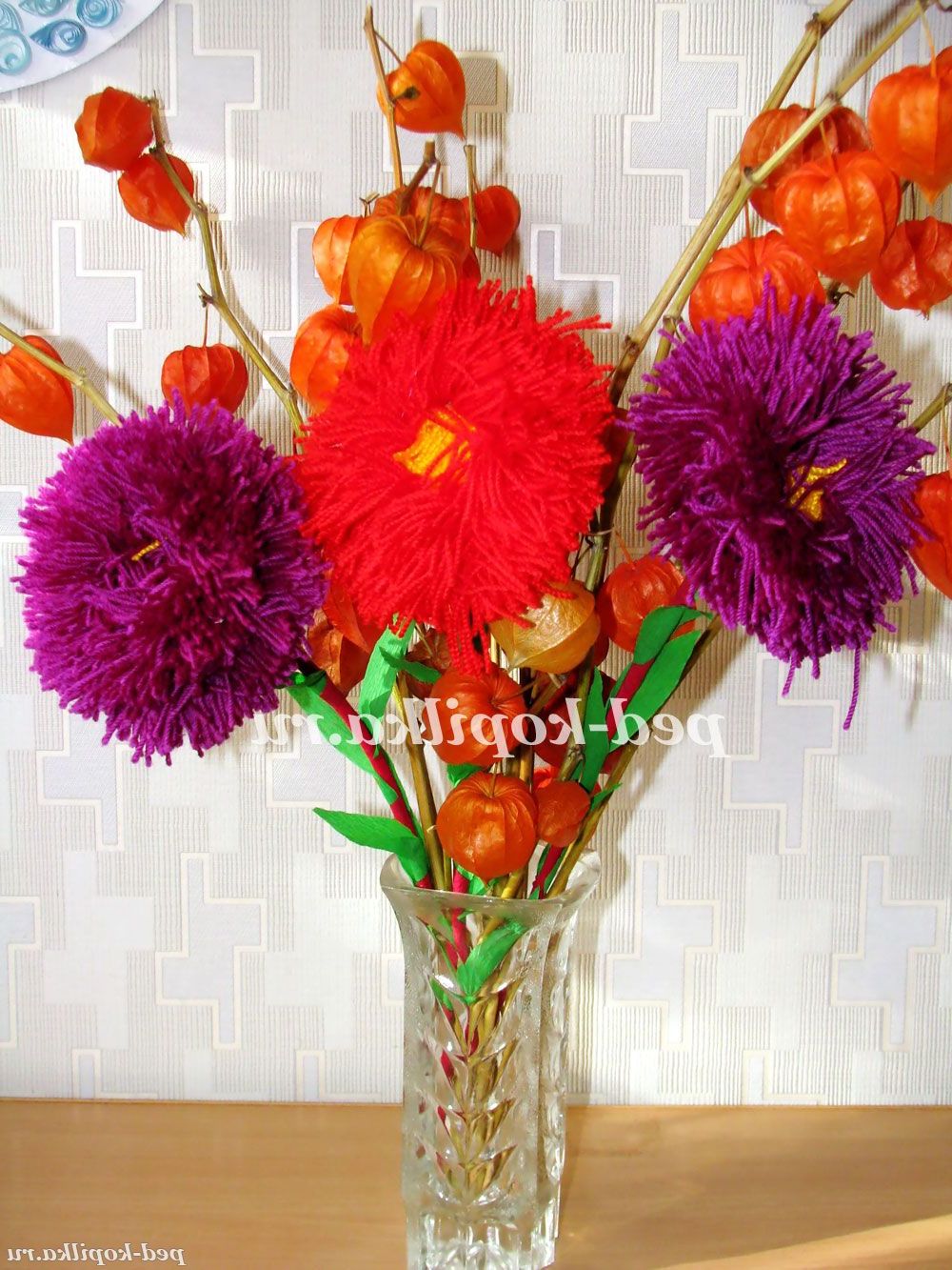 Осінні квіти з ниток своїми руками