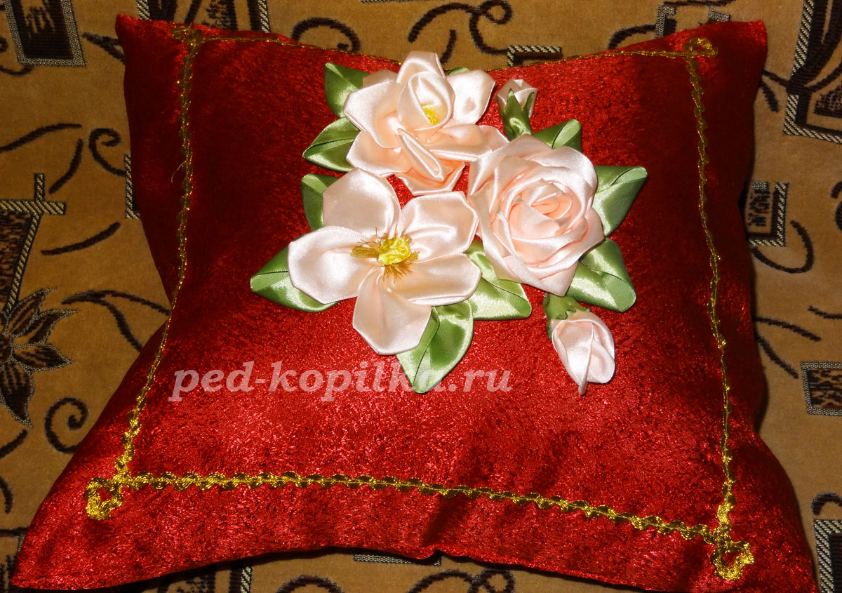 Красиві троянди з атласних стрічок цікаву прикрасу для подучки