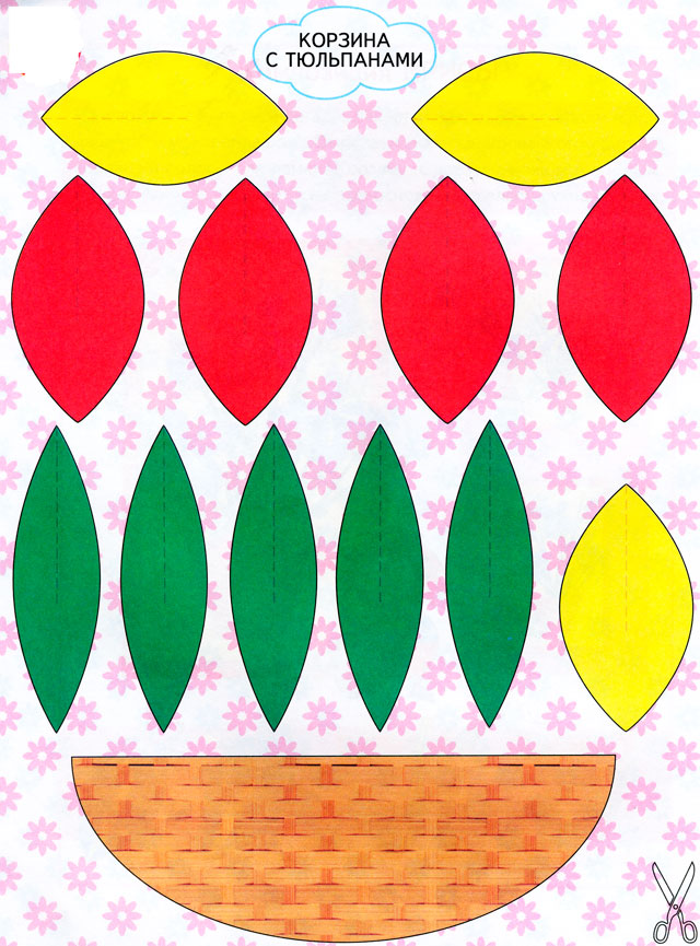 Шаблон для виготовлення квіткової композиції: Кошик з тюльпанами