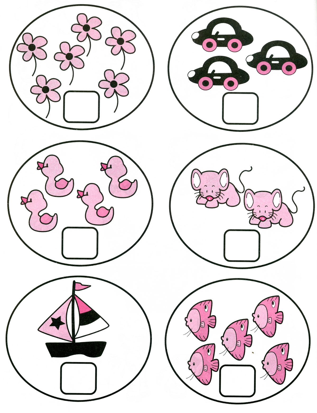 Необхідно порахувати кількість предметів в овалах і впиши у віконця.