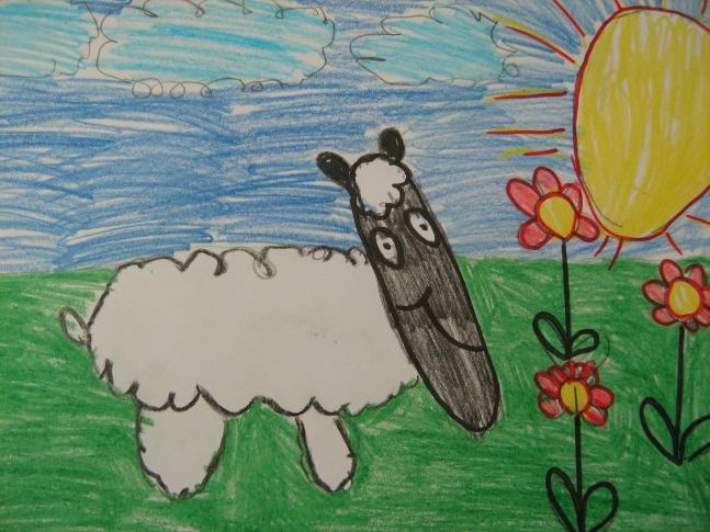 "На лузі біля річки Паслася, зростала овечка. А шубка у овечки Була вся суцільно в колечках"
