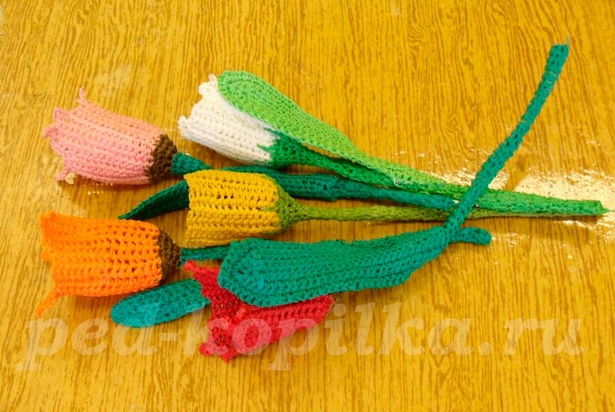 Тюльпани можна не тільки зробити з паперу, виростити в саду, але їх можна зв'язати гачком