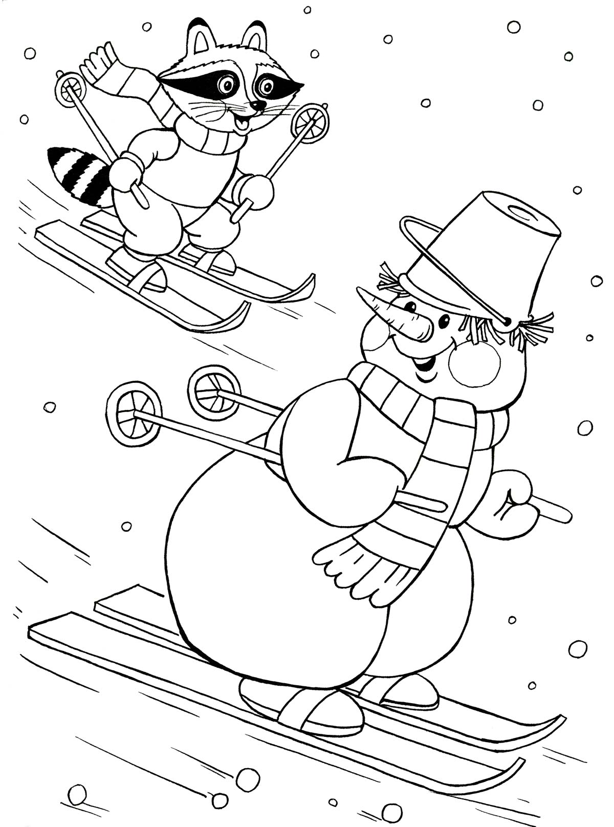 Сніговик з'їжджає з гірки. Він дуже задоволений, що він перший