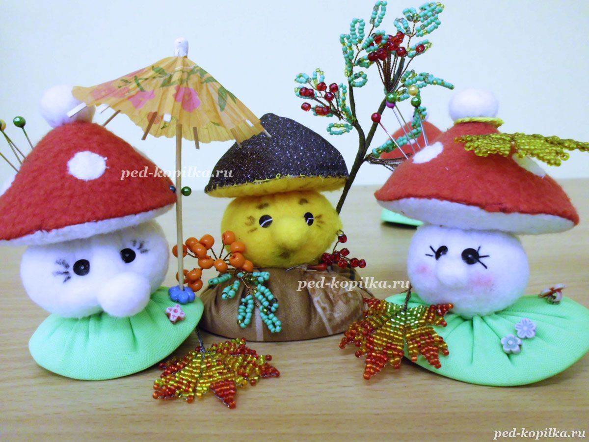 Ці осіння композиція з грибочками-игольницами стане прекрасним подарунком до Дня Матері