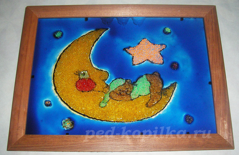 Картина "Солодкий сон", виконана в техніці комбінований вітраж (заливні фарби і бісер) стане відмінним прикрасою стін спальної зони