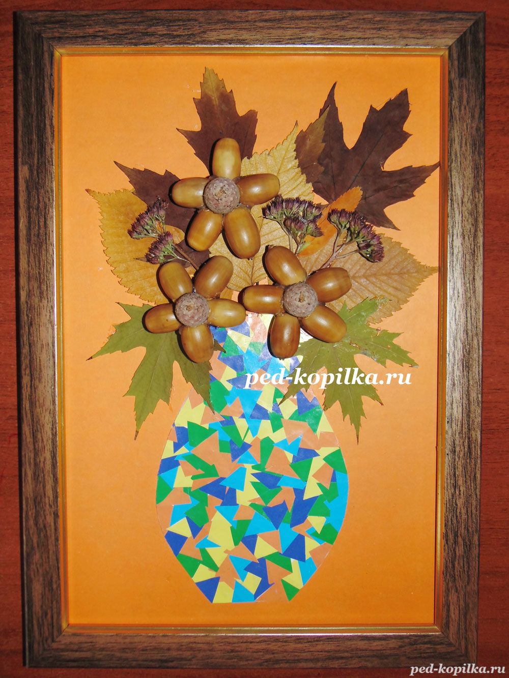 Об'ємна аплікація з природного матеріалу з використанням паперової мозаїки "Ваза з квітами"