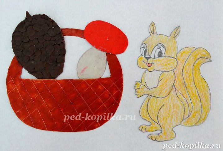 Пластилинография з елементами аплікації "Подарунок білочки"