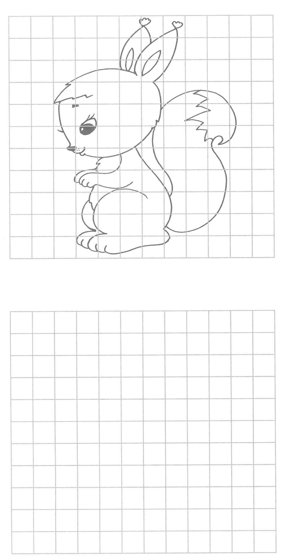 Повтори малюнок по клітинках і у тебе вийде картинка білочка.