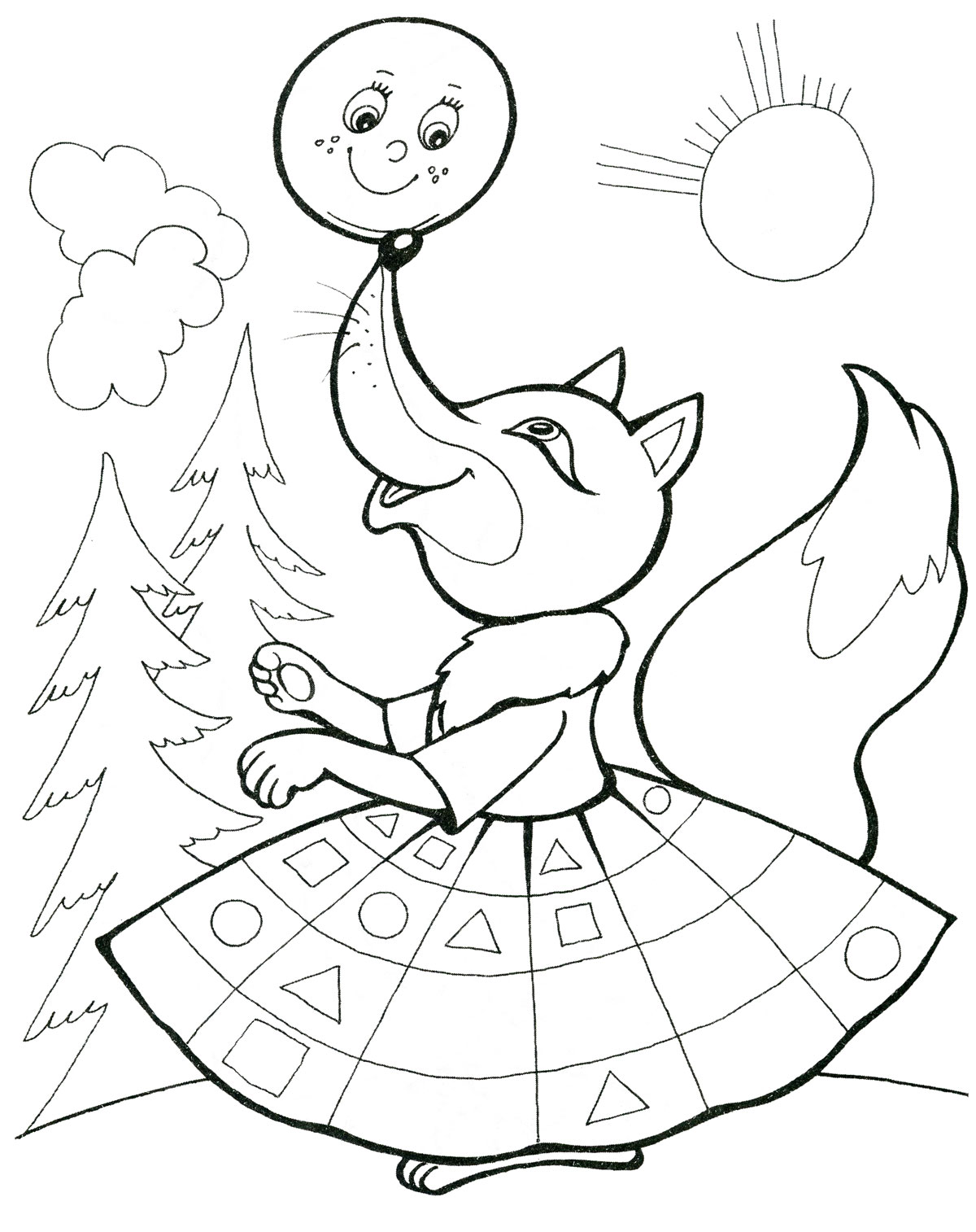 Домалюй сонечко, малюнок на спідничці у лисички.