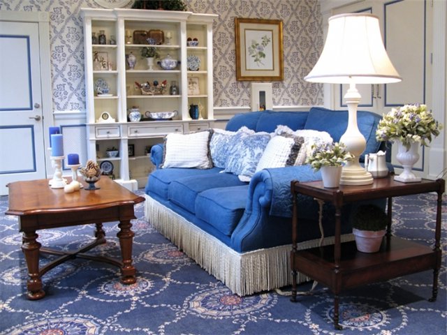 Чарівність сільського побуту підкреслюють аксесуари - кімнатні квіти, старовинні книги, настільні лампи під абажурами з макраме, глиняні або металеві з карбуванням тарілки, що висять на стінах, керамічний посуд, статуетки.