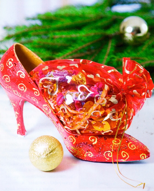 6. Покладіть подарунок в туфельку і перев'яжіть красивою стрічкою.