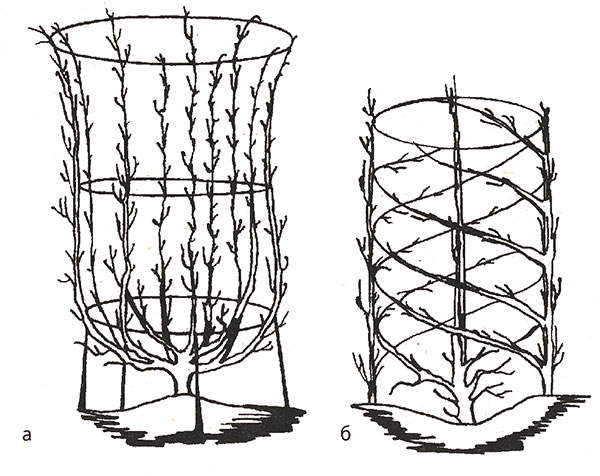 Рис. 2. Різновиди вазообразной форми крони: а - кругла, б - спіральна на основі металевого циліндра.