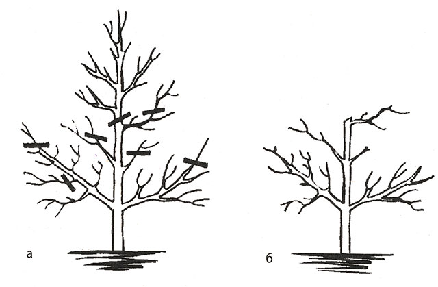 Досвідчені садівники рекомендують як першочергову міру обрізку стовбура на 1/3 з одночасним проріджуванням найбільш загущених ділянок (рис. 5).