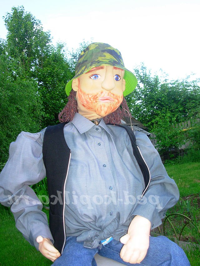 Голова Матвія - це верхня частина старих колготок, щільність 40 den, яка заповнена синтепоном, він швидко сохне після дощу.
