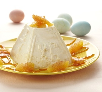 800 г сиру, 450 г вершкового масла, 6 яєчних жовтків, 2 склянки цукру, 300 г густих вершків, цукати, мигдаль, ванілін, лимон, солодощі.