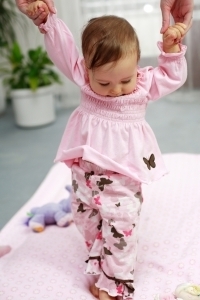 Коли ваш малюк робить перші кроки, притримуючи його, наспівуйте: