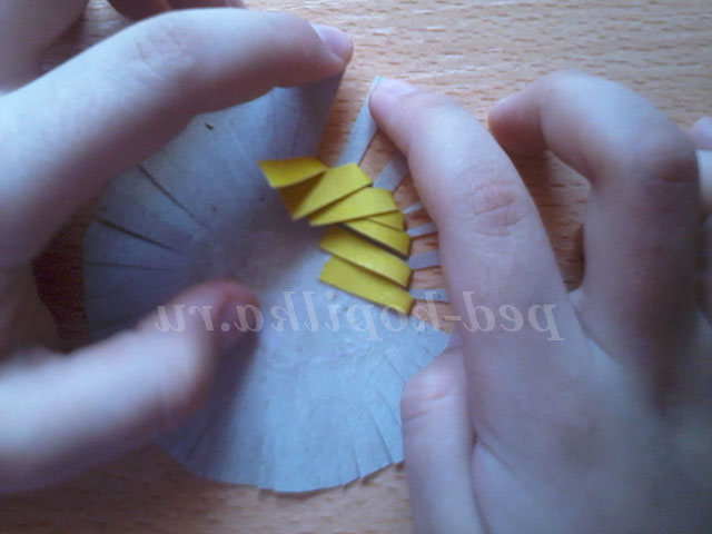 2) Робимо промінчики: розрізаємо велике коло на смужки по напрямку до маленькому колі.