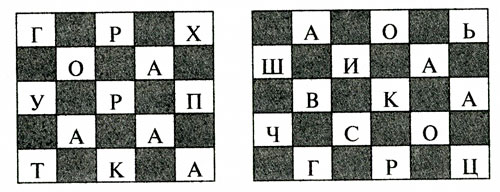В цей тин вписані назви десяти овочів, що ростуть на городах Росії. Частина букв у кожному назві закрита. Назви овочів розташовані горизонтально. Спробуйте їх прочитати з відкритим буквах.
