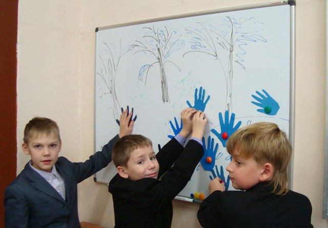 Якщо вам сподобався урок прикріпіть до нашої картині сині долоні, а якщо ні-червоні.