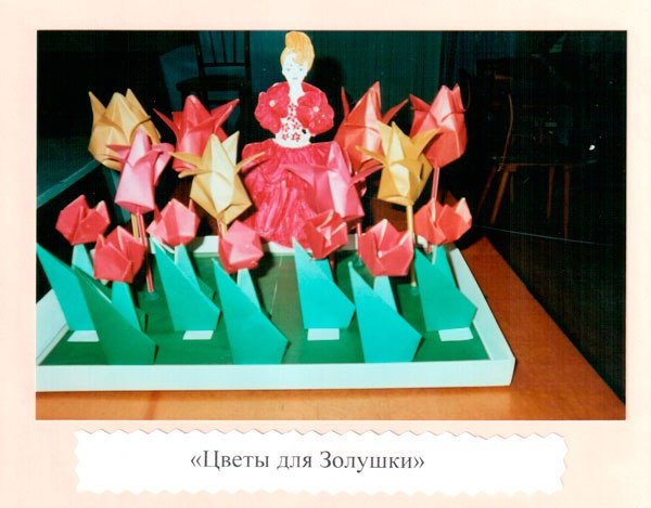 3. Закріплювати вміння складати сюжетну композицію з елементів, складених з паперу (орігамі),розвивати дрібну моторику рук, творчу фантазію.