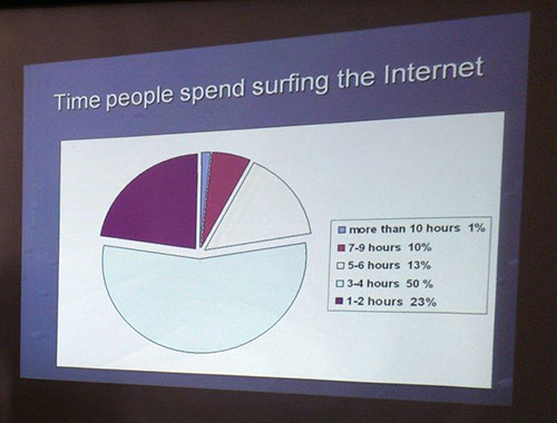 На столах учнів лежав роздатковий матеріал - опорні картки з фразами-виразами власної думки, які відпрацьовувалися на попередніх уроках і допомогли їм варіативно висловити своє позитивне або негативне ставлення щодо порушених проблем. Після цього ми приступили до обговорення тем проектів. Кожна з груп підготувала слухачам проблемні питання по своїй темі. Був також представлений аналіз дослідження - опитування, зроблені висновки та надані поради щодо ефективного використання сучасних гаджетів. В кінці уроку я оголосила оцінки з аргументацією, відзначила позитивні і негативні моменти в підготовці кожного учня. І завершальній фрази підвела підсумки уроку: «Thank you for all your presentations and your hard work. We've analyzed all the advantages and disadvantages of modern gadgets. We can't refuse from different technological devices because they really help us in our everyday life. However, it depends on us, how wise we use it and benefit from it, instead of getting addicted to it. Let me end our lesson with the words of famous German philosopher Erich Fromm: "Education and technical progress make machines which act like men and produce men who act like machines". I want you not to be machines and not to look like this.... don't be addicted to gadgets, but be open, helpful to each other, be happy and friendly. Thank you for attention! »