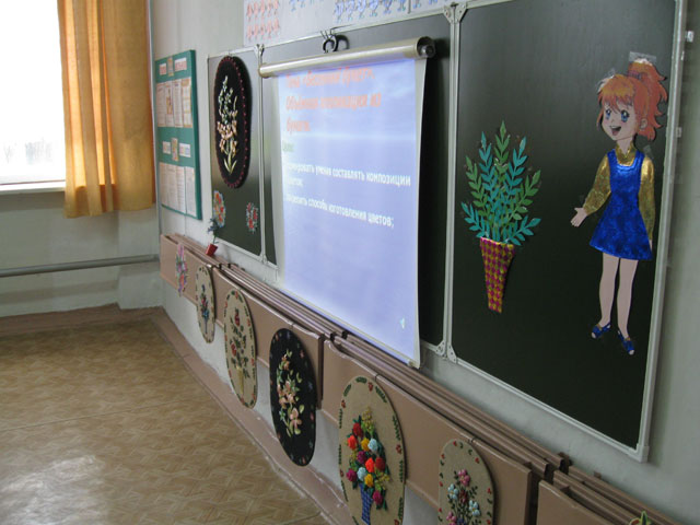 (Ми вчилися робити квіти з паперу і складати композиції з квітів)
