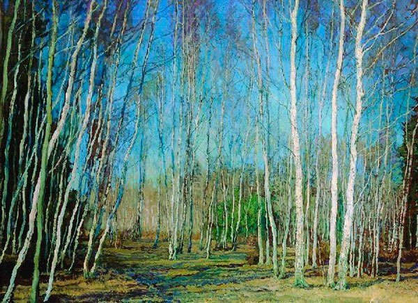 Ця картина - глибоко відчутий розповідь про вічно юної природі. Чудово передані тут ясна блакить небес, проглядывающих крізь тендітні, ще не зазеленевшие гілки, ніжні рожеві стовбури беріз, прокидається до життя земля, зігріта першими теплими променями. Художній образ цього тонкого живописного твору випромінює спокій. Разом з тим у ньому багато бадьорості, свіжості, що свідчать про світлою, життєрадісною душі художника.