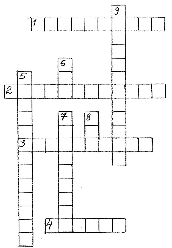 (Вивішується кросворд з відповідями і учні класу за записами учня, який працював біля дошки, самостійно оцінюють свою роботу. Відповідальний теж сам оцінює себе.).